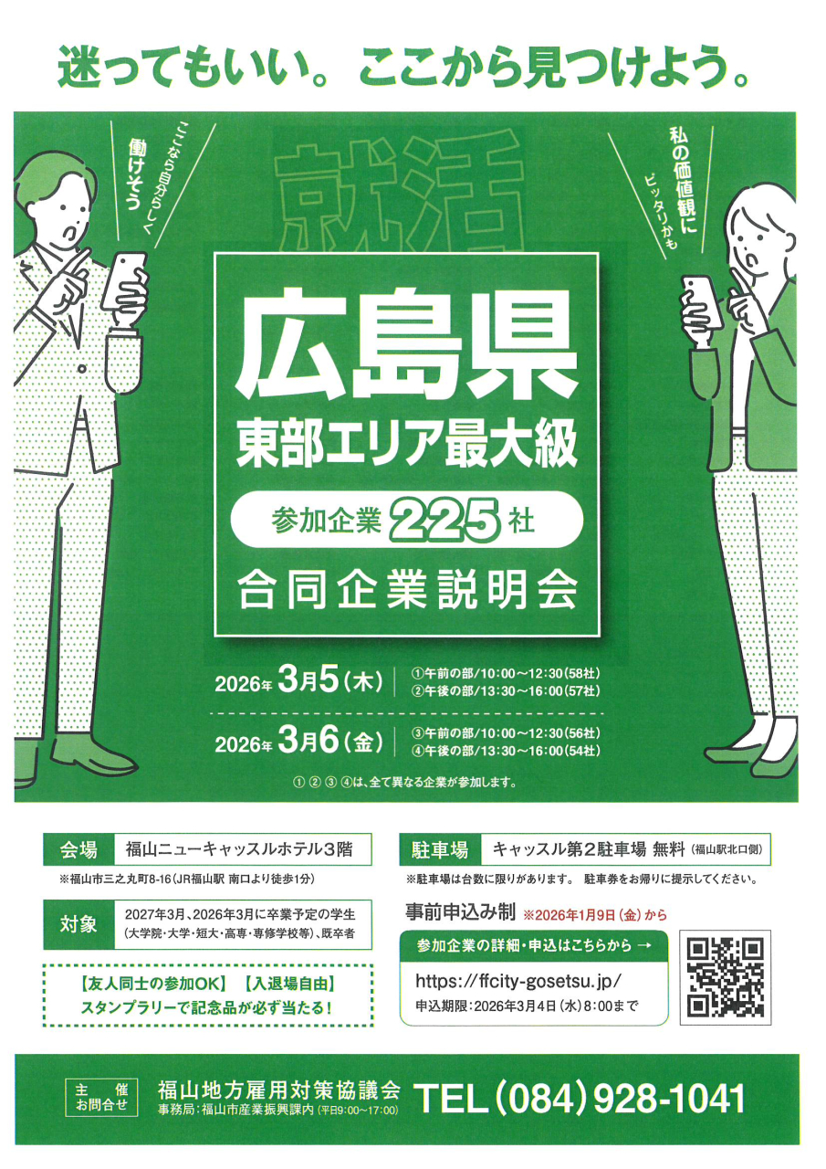 2026年3月6日(金) 「福山・府中 新卒向け合同企業説明会」へ参加します
